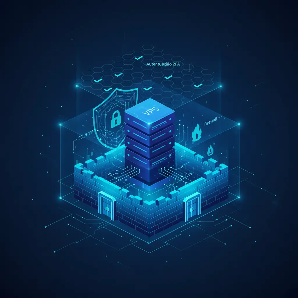 A segurança web moderna exige uma mentalidade de defesa em profundidade. Cobrimos os pilares: SSL/HTTPS para proteger dados em trânsito, um firewall bem configurado para controlar o perímetro de rede e práticas de autenticação rigorosas para proteger o acesso administrativo. Implementar essas camadas exige conhecimento técnico, mas é o que separa um ambiente estável de um alvo fácil.